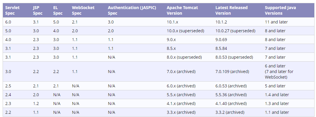https://tomcat.apache.org/whichversion.html