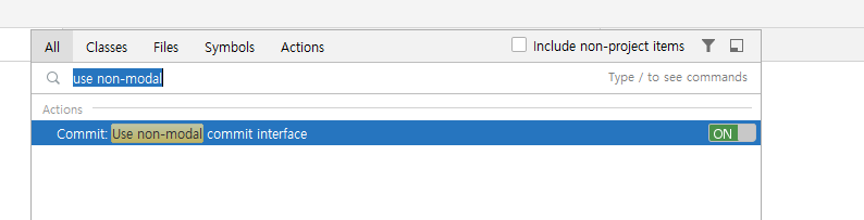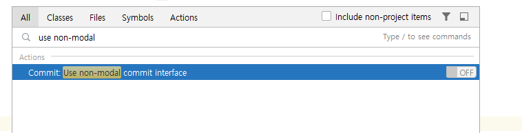 Shift 를 두번 빠르게 클릭하고 검색 모드에서 "use non-modal"을 검색하자.
