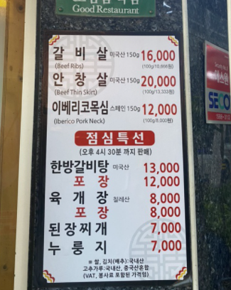 점심특선으로 갈비탕, 육개장, 된장찌개도 파는듯 하다.