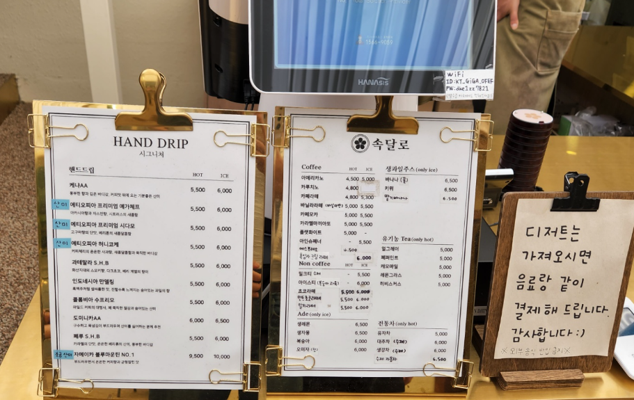아메리카노 : 5000원, 생레몬 ade : 6500 원