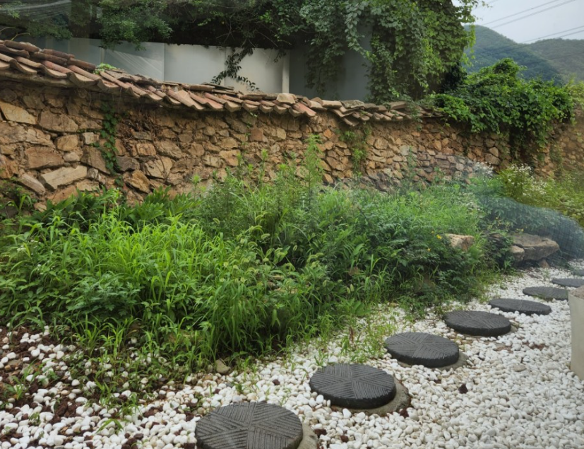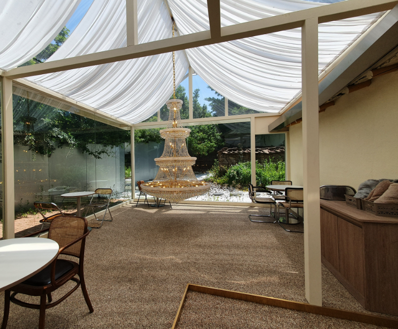 카페 뒤쪽에 흰색으로 깔려있는 자갈이 멀리서 보면 마치 눈같아서 보기좋았다.
