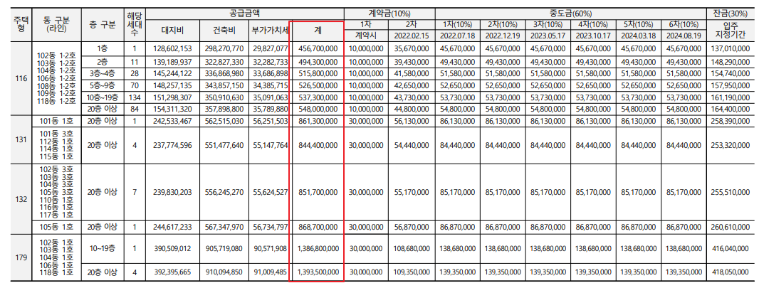 공급 분양가(최저~최고)