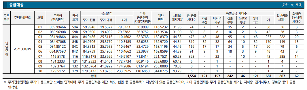 - 공급 규모 및 내역 : 아파트 지하 3층 ~ 지상 32층, 18개동, 총 1,554세대 중 일반분양 1,554세대 및 부대 복리시설