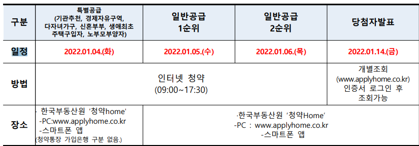 ▣ 일반공급 1순위 : 2022.01.05 (수)