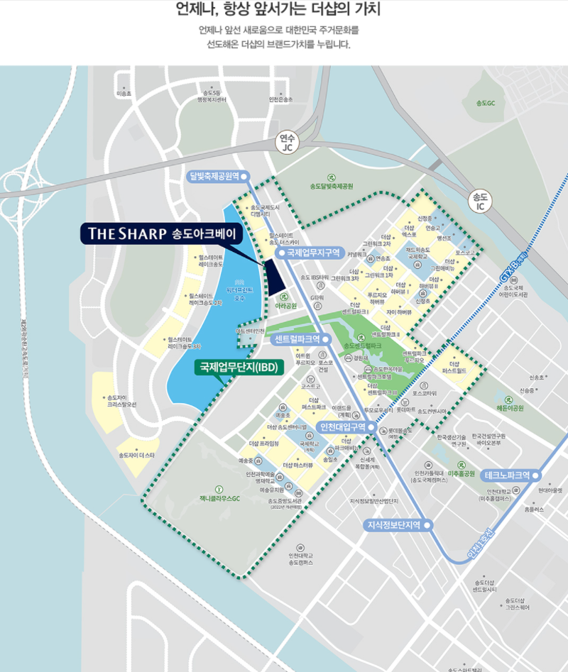 3) 앞쪽에 워터프론트 호수가 있고, 동남쪽에 송도 센트럴파크가 위치하고 있기 때문에