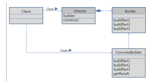 개념이 어렵기는 하는데, 전체를 구성하고 있는 각 부분을 만들고 단계를 밟아 만들어 나가는 패턴을 Builder Pattern이라고 해요. Builder Pattern 다이어그램은 다음과 같아요.