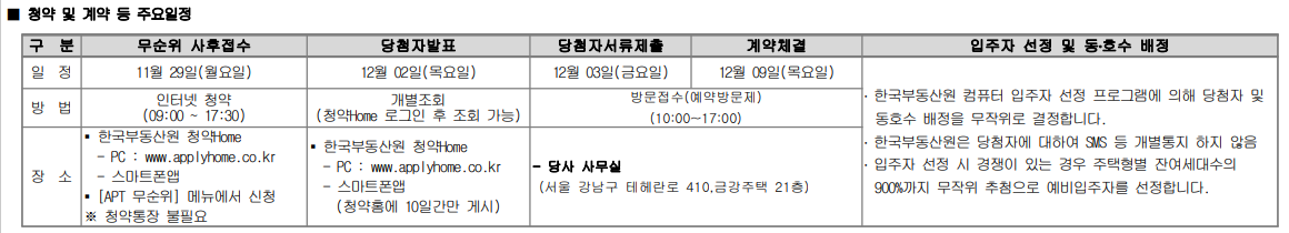 - 청약신청금은 없음 (본인 및 세대원 중 본 주택의 당첨자 발표일 현재 재당첨제한 기간 내에 있는 경우 청약신청이 불가).