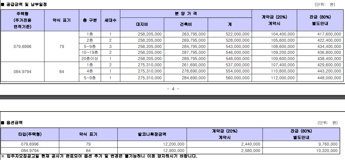 - 중도금대출 없음 ( 계약금 20%, 잔금 80% )