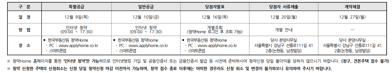 A. 청약홈에서 12.9 ~ 10일 PC 또는 모바일앱으로 신청 가능합니다.