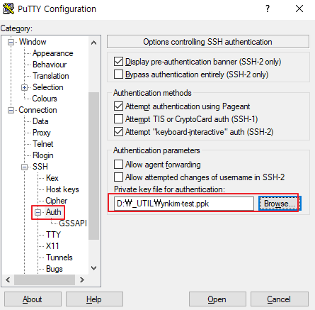 6. Connection > SSH > Auth