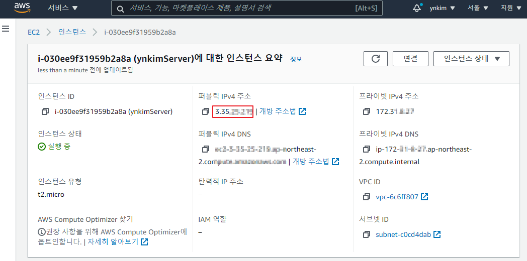 HostName 에는 AWS EC2 아이피를 적어줘야하는데, 아래와 같이 퍼블릭IP 하단에 보면 IP