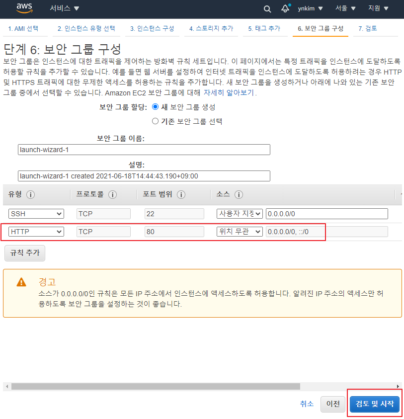 5. 6단계 보안 그룹 구성은 방화벽 설정을 이야기 하는것이다.