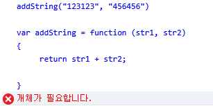 에러가 나는 상황이지만 정상 동작 한다. addString 함수를 상단으로 올려서 참조 할수 있도록 해줬다.