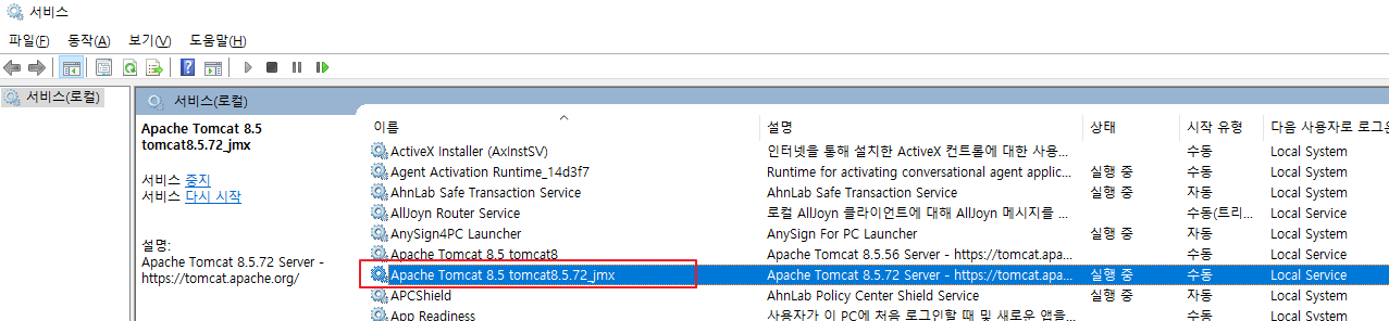 위에서 등록한 서비스가 등록되어있는 것을 볼수있다.