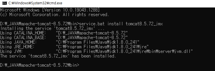 %TOMCAT_HOME%service.bat을 실행해주면 되며 사용방법은 아래와 같다.