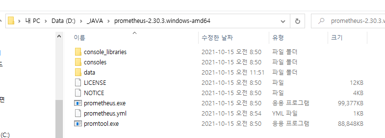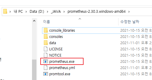 prometheus.exe 를 실행한다.