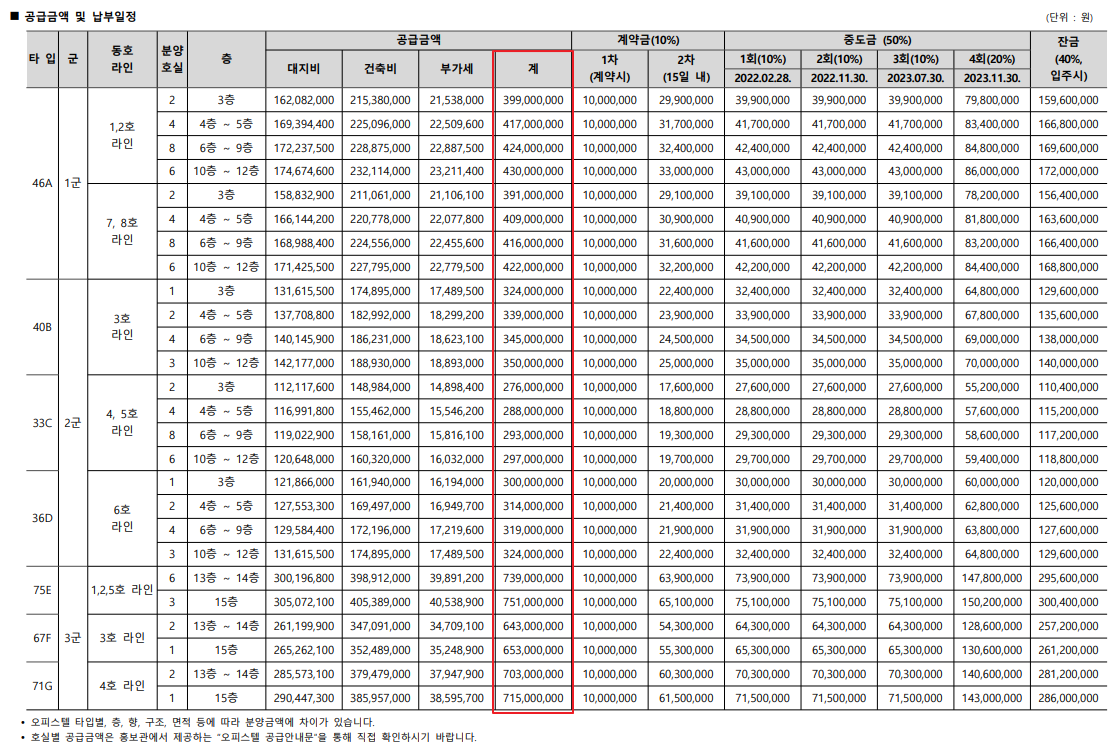 - 전매제한 : 없음 ( 100실 미만 주거용 오피스텔 )