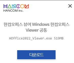 아래 링크를 통해서 무료로 한컴 오피스 2022를 다운로드 하시기 바랍니다.