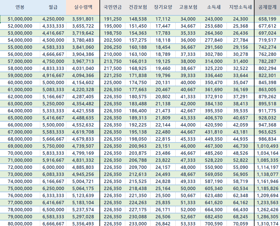 5100만원 에서 8000만원 구간에 대한 실수령액은 아래에서 자세히 알아보시기 바랍니다.