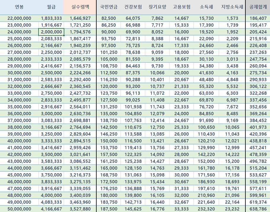 2200만원 에서 5000만원 구간에 대한 실수령액은 아래에서 자세히 알아보시기 바랍니다.