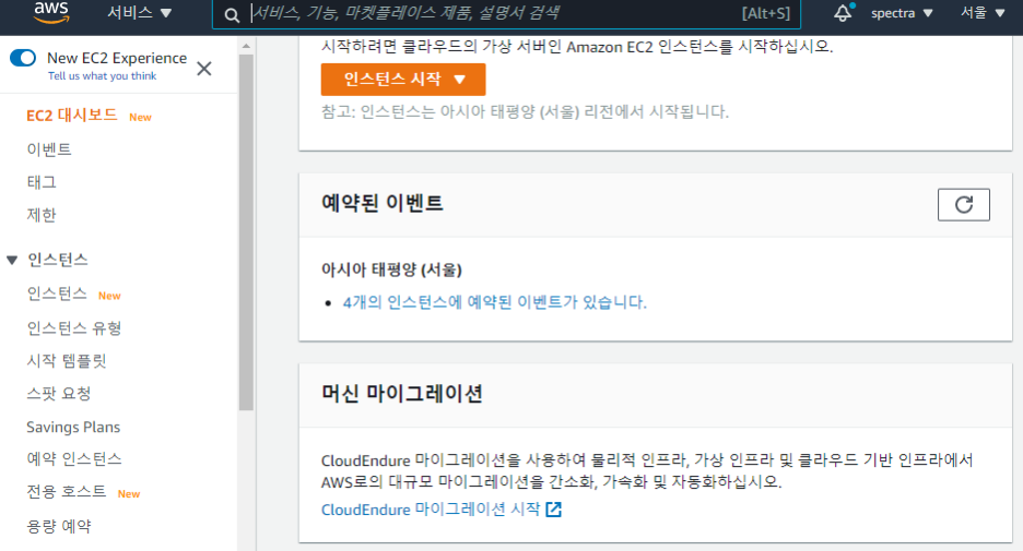 1. 아마존 콘솔 로그인 -> 인스턴스 시작