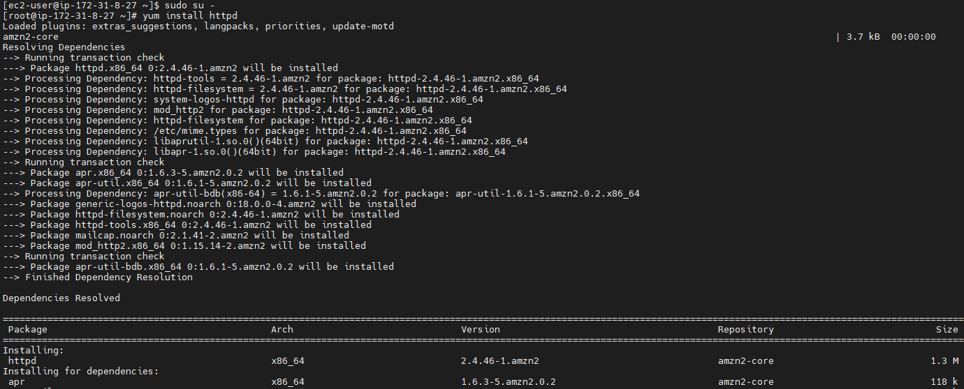 ( 정석은 apache.org 가서 apache 다운 받아서 설치 하지만 yum install 사용함 )