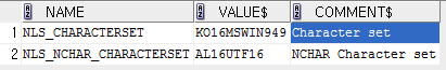 | KO16KSC5601 | KO16MSWIN949 | UTF8 | AL32UTF8 | |