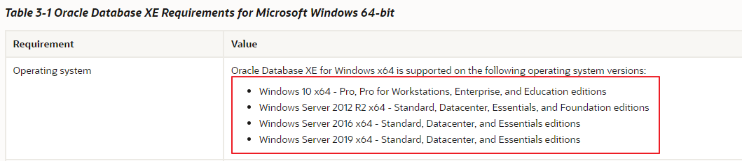 https://docs.oracle.com/en/database/oracle/oracle-database/21/xeinw/requirements.html#GUID-5E76BC2B-1FF1-4BB8-8E12-7773BB7949BB