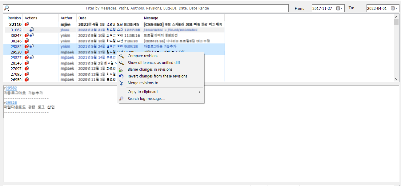 Totorisesvn - show log 를 클릭한다.