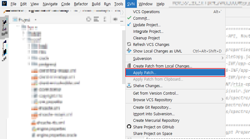 SVN commit 내용을 intellij에서 그대로 patch 하기