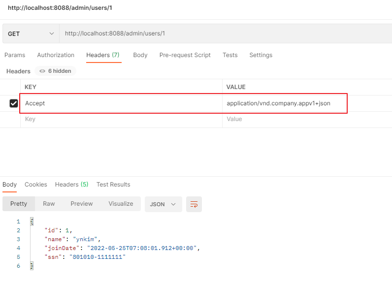 호출시에는 Headers의 Accept키값을 만들어 매칭 시켜주면 된다.