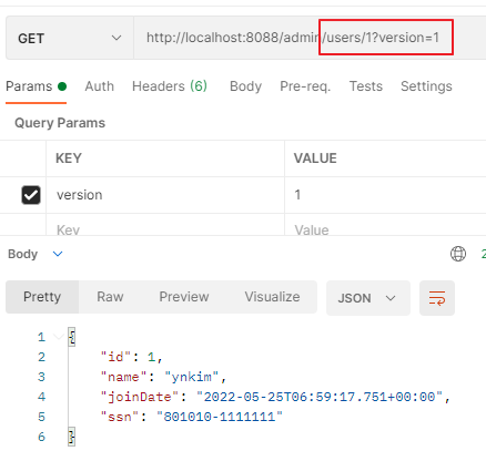 @GetMapping(path="/v1/users/{id}", params="version=1")