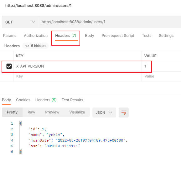 @GetMapping(path="/v1/users/{id}", headers ="X-API-VERSION=1")