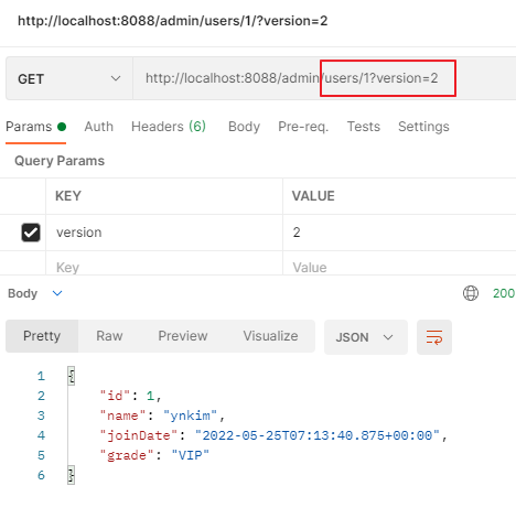 @GetMapping("/v2/users/{id}", params="version=2")