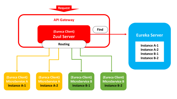 zuul lib를 이용하여 Gateway 서버를 만들수 있다. ( proxy 서버라고 표현하기도 함. )