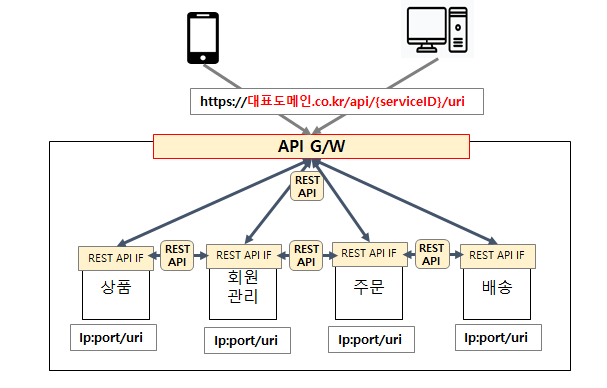 각각의 서비스 IP주소, 포트도 다르고, 모두 REST API 기반의 서버인데,