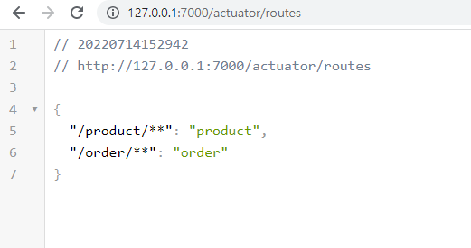 http://127.0.0.1:7000/actuator/routes 를 호출하여 호출 리스트를 확인할수 있다.