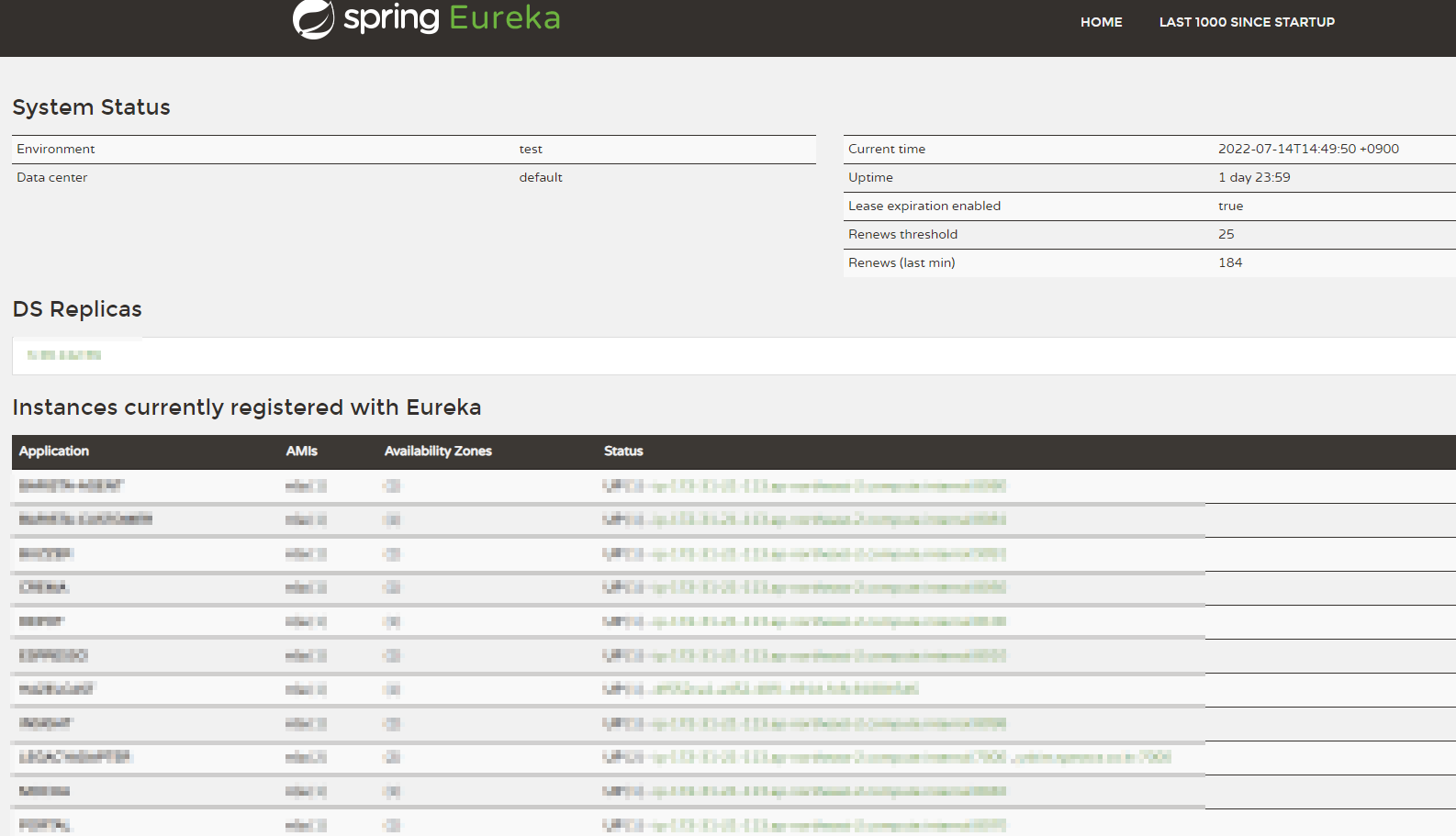 Eureka server 접속한 client들 ( RestApi 서버들 ) 호출가능한 서버가 확인될것이다.