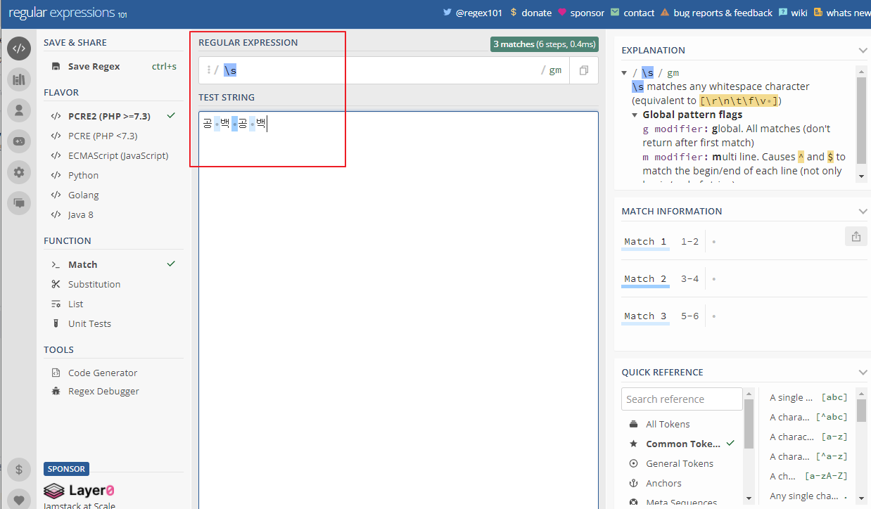 요새는 시대가 좋아져서 바로 바로 적용해서 해당하는 정규 표현식이 어떻게 매칭되는지