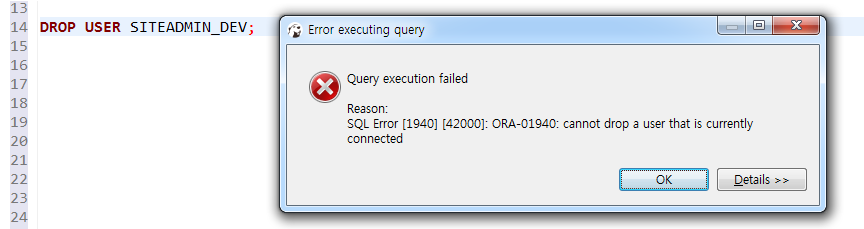 ora-01940 : 현재 접속되어 있는 사용자는 삭제할 수 없습니다