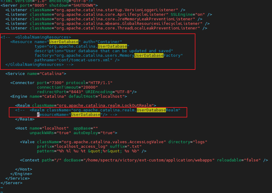 {tomcat_home}/conf/server.xml 의 내용중에 UserDatabaseRealm 부분 주석 또는 삭제
