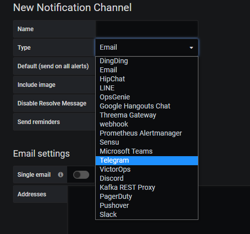 알람 받을 채널은 이메일, 라인, 텔레그램, 디스코드, 슬랙 등등 매우 다양하다.